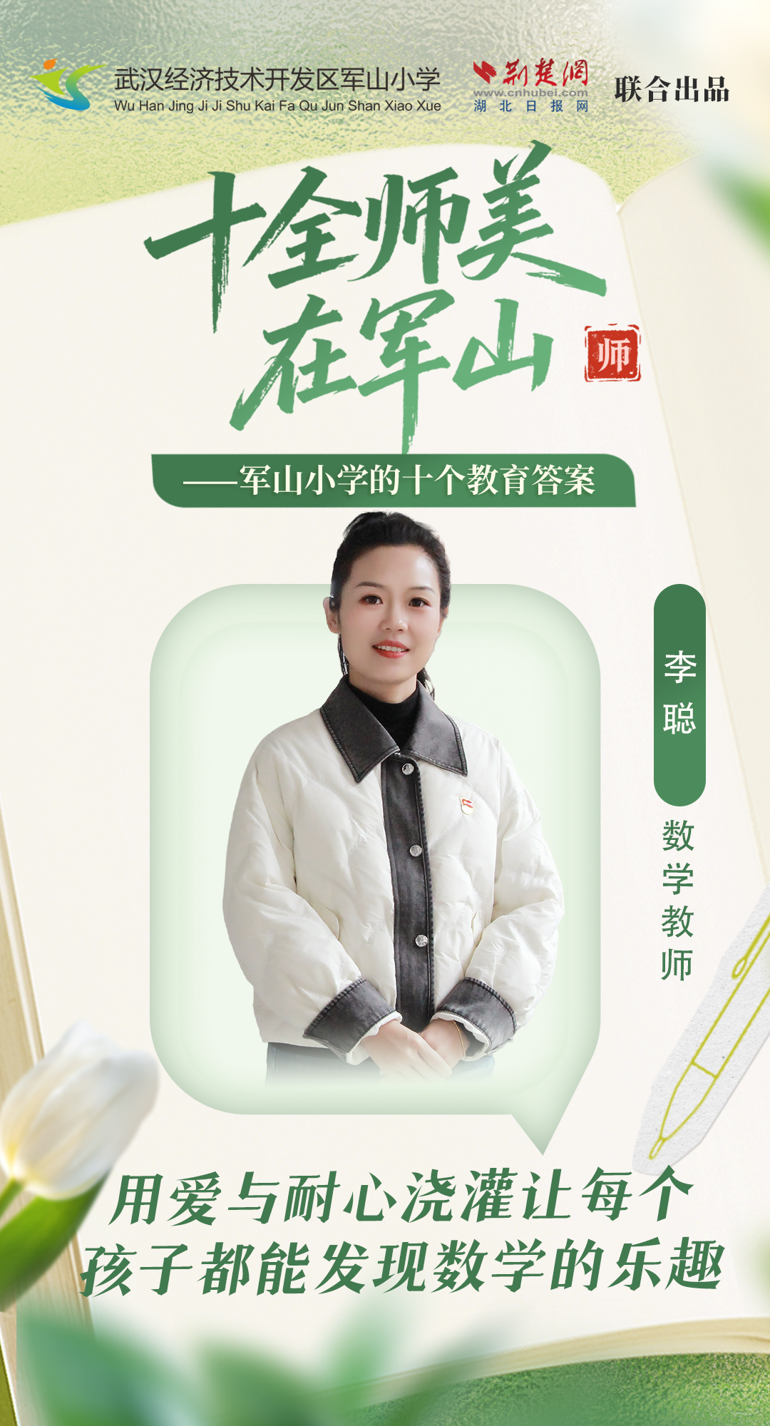 【编者按】在武汉经济技术开发区君山小学,教育是一场心灵启迪的暖心之旅。这里的老师是童心的守护者,智慧的点燃者——他们让数学绽放出游戏,让科学绽放出探索,让笔记带来勇气,让色彩畅所欲言。他们俯身聆听每颗年轻心灵的呢喃,耐心等待每一个成长的节点。他们使校园成为最安全、最有活力的童年成长场所。